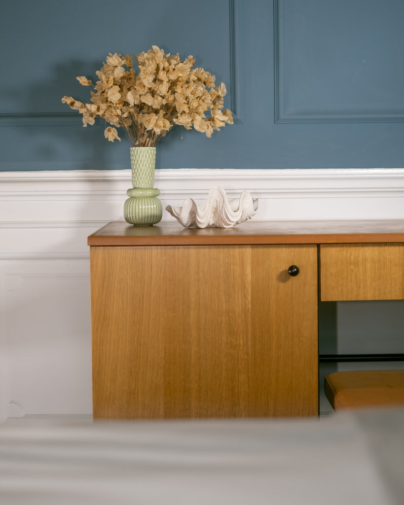 The Attina is a versatile and elegant single shell, perfect for various uses. Place it on your bedside table to hold your nail oil, scrunchie, and lip balm. Alternatively, use it as a stylish decor piece on your bookshelf, or fill it with cookies to enjoy with your afternoon coffee. Designed in Sweden and crafted from high-quality resin in China, The Attina brings a touch of sophistication and practicality to any space.